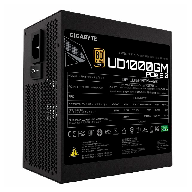 Fuente Gigabyte UD1000GM PG5 V2 1000W 80 Plus Gold ATX 3.0 PCIe 5.0 Full Modular