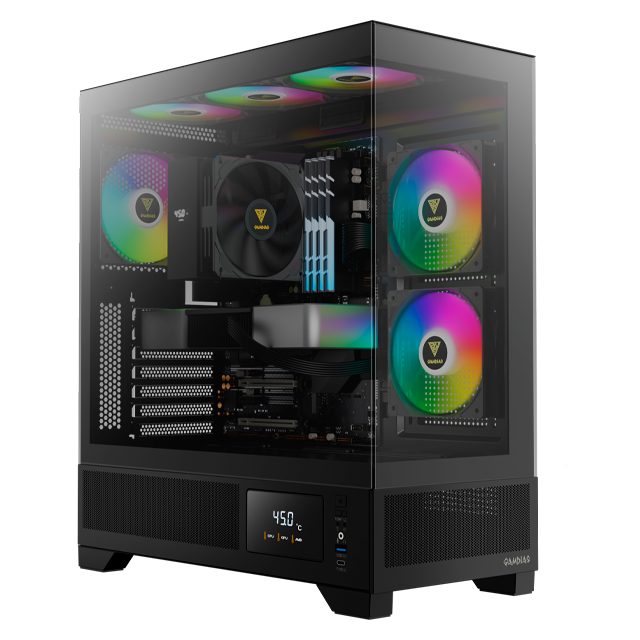 Gabinete Gamdias Atlas M1 Black Pantalla LCD Templado USB Type-C 3x12cm ARGB