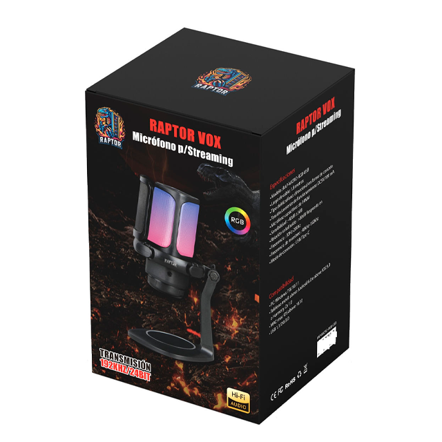 Micrófono Raptor Vox RGB USB p/Streaming