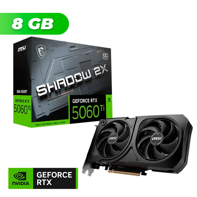 Placa de Video MSI NVIDIA GeForce RTX 5060 TI SHADOW 2X OC PLUS 8Gb GDDR7